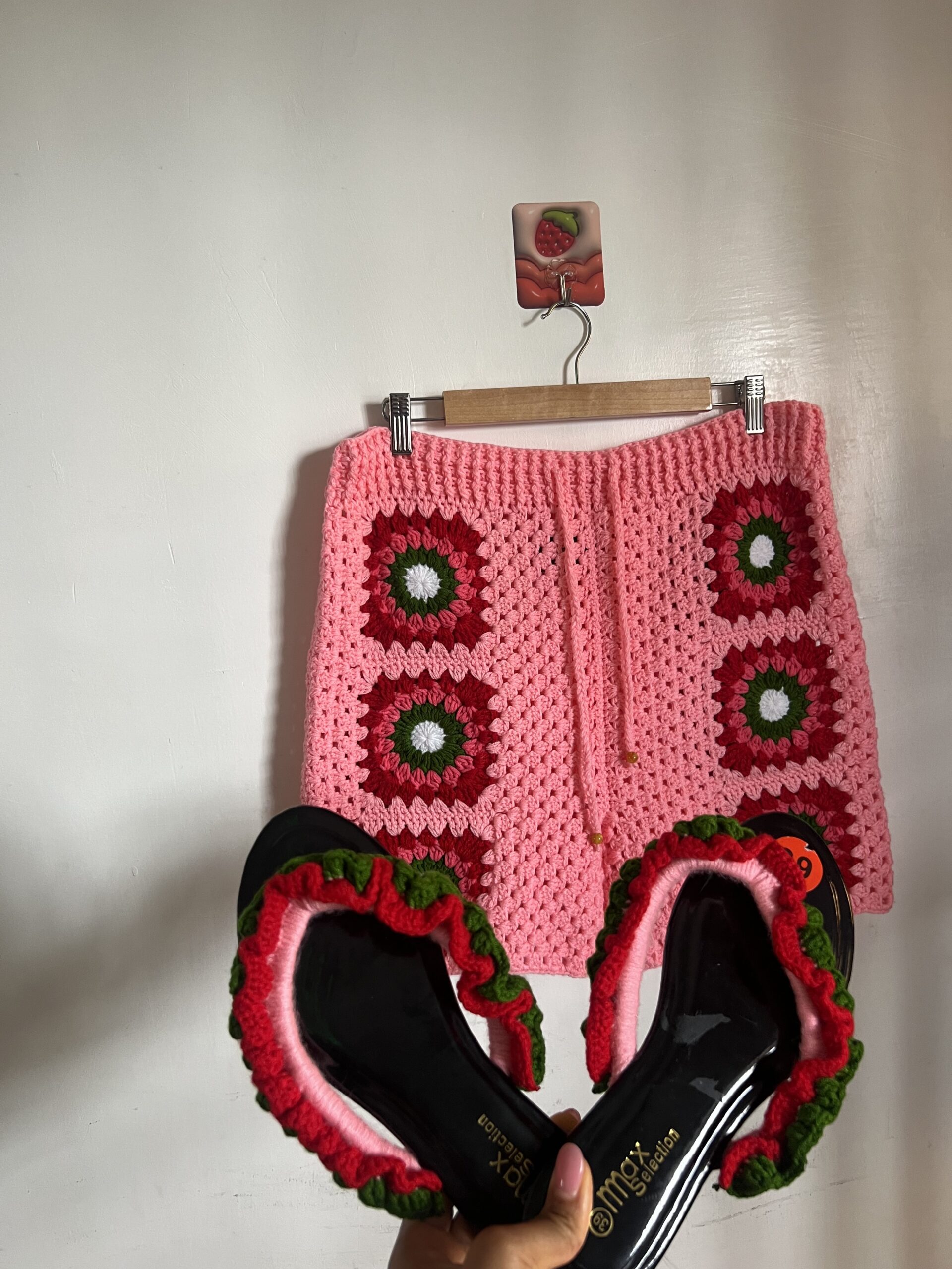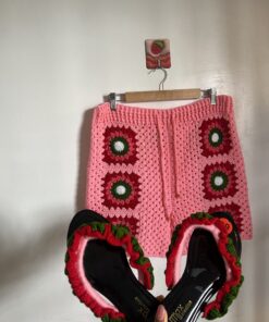 The centerpiece of the set, the Strawberry Shortcake maternity dress, is a handcrafted marvel featuring a playful blend of pinks, reds, green touch and soft whites. The dress is designed to celebrate the beauty of pregnancy with comfort and elegance, adorned with delicate details that evoke the sweetness of strawberry shortcake.