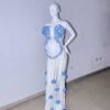 To complement the dress, the set includes elegant matching gloves that add a touch of sophistication, coordinating footwear that ensures comfort and style, and beautifully designed earrings that complete the look with a cohesive, elegant flair.